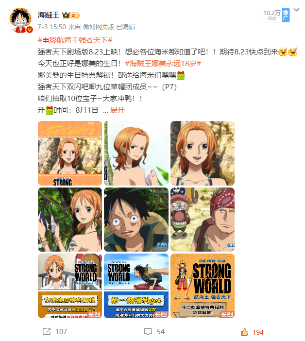 与《航海王》剧场版在中国巨幕影院的合作包括:通过微博、公众号、哔哩哔哩等多平台进行电影上映的推广宣传;负责推广售票(包括分销和代理);以及线上线下双渠道举办粉丝活动等。